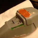 One of the last things to do is to fabricate some buttons for the control pad. The Rodd.com kit comes with a small piece of styrene along with a template to make the buttons. However, I bought this particular kit from a reseller, and the styrene and template were missing. I purchased some 0.125″ thick styrene plastic (as noted…